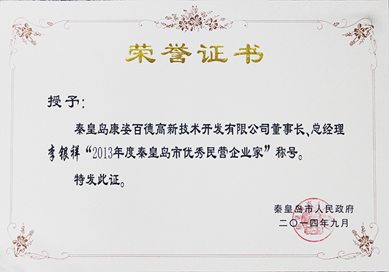 2019年6月李銀祥董事長榮獲2019年度“最美秦皇島人 最美民營企業(yè)家”個(gè)人榮譽(yù)稱號(hào)。