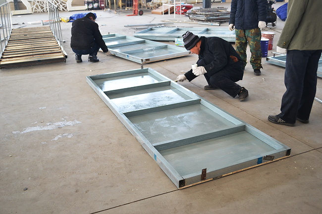 近日,中央電視臺(tái)《過年七天樂》節(jié)目錄制準(zhǔn)備工作緊張有序的進(jìn)行著。為減輕節(jié)目組的壓力,秦皇島康姿百德高新技術(shù)開發(fā)有限公司制造中心機(jī)修組主動(dòng)承擔(dān)了舞臺(tái)背景的制作任務(wù)。