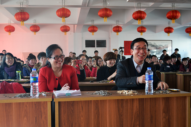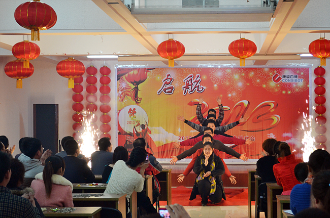 聯(lián)歡會在歌曲聯(lián)唱《歡天喜地拜大年》的歡快節(jié)奏中拉開帷幕,公司各部門紛紛上臺,《新年好》、《恭喜發(fā)財》、《正月里來正月正》、《小拜年》、《恭喜恭喜你》等經(jīng)典拜年歌曲再現(xiàn),別出心裁的出場方式讓人目不暇接。由市場部北京區(qū)表演的舞蹈《美觀不美觀》將演出推向了高潮,場下掌聲不斷,歡快、喜慶、熱烈的氣氛溢滿會場,整個會場暖意融融,變成了歡樂的海洋。