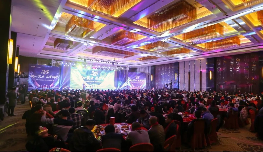 康姿百德集團董事長李銀祥等領導與銷售公司及職能部門全體員工歡聚一堂,共度盛典。