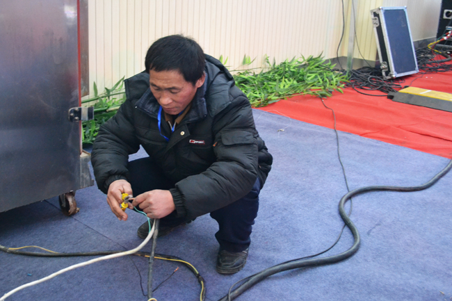 全天候保證會(huì)場用電——志愿者及時(shí)架設(shè)各種線路,排除場館用電故障