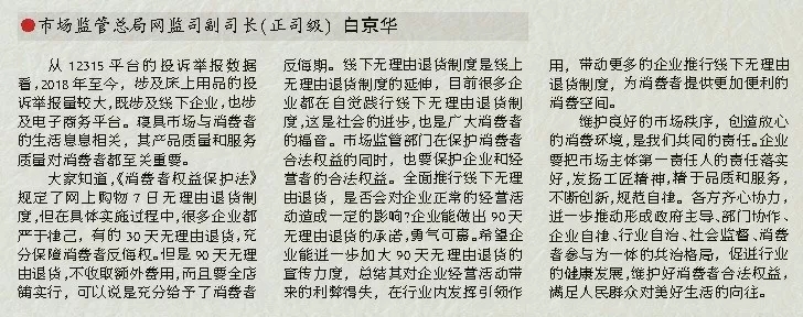 大家知道,《消費(fèi)者權(quán)益保護(hù)法》規(guī)定了網(wǎng)上購(gòu)物7日無(wú)理由退貨制度,但在具體實(shí)施過(guò)程中,很多企業(yè)都嚴(yán)于律己,有的30天無(wú)理由退貨,充分保障消費(fèi)者反悔權(quán)。但是90天無(wú)理由退貨,不收取額外費(fèi)用,而且要全店鋪實(shí)行,可以說(shuō)是充分給予了消費(fèi)者反悔期。線下無(wú)理由退貨制度是線上無(wú)理由退貨制度的延伸,目前很多企業(yè)都在自覺(jué)踐行線下無(wú)理由退貨制度,這是社會(huì)的進(jìn)步,也是廣大消費(fèi)者的福音。市場(chǎng)監(jiān)管部門(mén)在保護(hù)消費(fèi)者合法權(quán)益的同時(shí),也要保護(hù)企業(yè)和經(jīng)營(yíng)者的合法權(quán)益。全面推行線下無(wú)理由退貨,是否會(huì)對(duì)企業(yè)正常的經(jīng)營(yíng)活動(dòng)造成一定的影響?企業(yè)能做出90天無(wú)理由退貨的承諾,勇氣可嘉。希望企業(yè)能進(jìn)一步加大90天無(wú)理由退貨的宣傳力度,總結(jié)其對(duì)企業(yè)經(jīng)營(yíng)活動(dòng)帶來(lái)的利弊得失,在行業(yè)內(nèi)發(fā)揮引領(lǐng)作用,帶動(dòng)更多的企業(yè)推行線下無(wú)理由退貨制度,為消費(fèi)者提供更加便利的消費(fèi)空間。