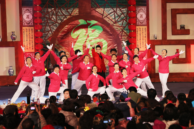 著名女高音歌唱家李丹陽的音色甜美清新,舞臺形象優(yōu)雅大方,是深受聽眾喜愛的歌唱藝術家。她與康姿百德公司董事長即興對唱《敖包相會》獲得了滿堂喝彩。隨后,李丹陽為“畢姥爺”獻上了一道健康大菜——秦皇島出品的正能量紅歌《最美中國人》。演唱者是90后網(wǎng)絡歌手楊德朗,以風靡全國的《康姿百德健身操》伴舞,清新陽光的曲風、舞風,滌蕩著人們的心靈。
