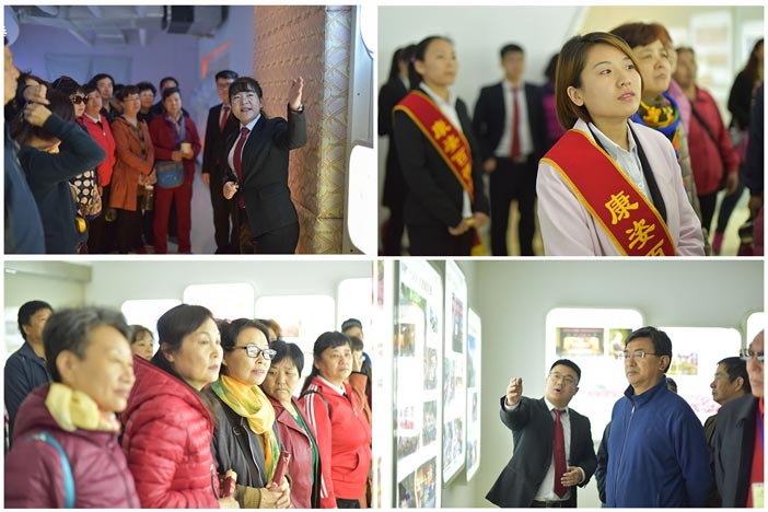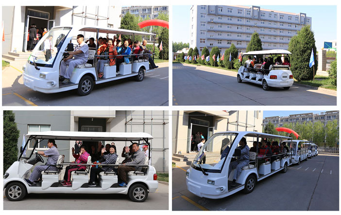 健身愛(ài)好者們乘觀光車(chē)參觀康姿百德第一科技園