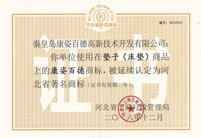 “河北省著名商標(biāo)”證書(shū)