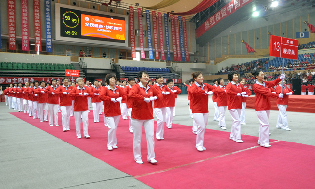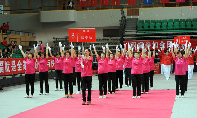 北京昌平隊 從選拔、備戰(zhàn)到今天的總決賽,一路走來,參賽隊員們的動作越來越熟練,越來越標(biāo)準(zhǔn),團(tuán)隊凝聚力越來越強。這些活力十足的中老年朋友并沒有滿足于越跳越熟練這一標(biāo)準(zhǔn),不少參賽隊伍在原有健身操基礎(chǔ)上又添加了一些新的成分。充滿個性的隊名、色彩鮮艷的運動裝、揮舞的彩旗等創(chuàng)意,在總決賽的舞臺上給所有觀眾打造了一臺視覺盛宴,讓參賽節(jié)目更有看頭。賽場上,參賽隊員的展示非常到位,微笑始終掛在臉上,就連賽前的口號都是精心準(zhǔn)備、反復(fù)推敲?;盍o限的她們感染了舞臺下的每一位觀眾,現(xiàn)場觀眾都在用自己最熱烈掌聲、最大的歡呼聲表達(dá)著對參賽選手的喜愛和尊重。 |