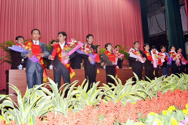 與會(huì)領(lǐng)導(dǎo)與全體勞動(dòng)模范合影 |