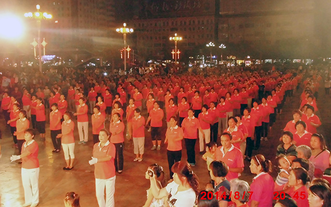 8月7日晚,河南新鄭市炎黃廣場(chǎng)上,廣大市民以各種方式迎接第六個(gè)“全民健身日”的到來。由康姿百德戶外健身營400多人組成的健身操隊(duì)伍,隨著歡快有力的音樂,共同跳起康姿百德健身操,以實(shí)際行動(dòng)投入到全民健身活動(dòng)中來,形成了當(dāng)?shù)厝窠∩淼囊坏懒溜L(fēng)景線。新鄭電視臺(tái)對(duì)本次活動(dòng)進(jìn)行了現(xiàn)場(chǎng)采訪和報(bào)道。