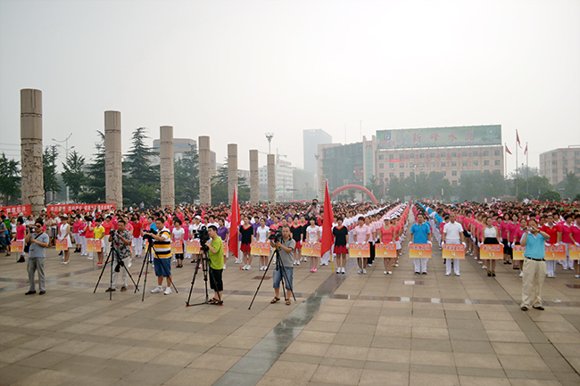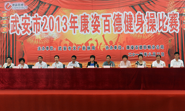 為迎接第五個(gè)“全民健身日”的到來(lái),引導(dǎo)廣大群眾積極參加體育健身活動(dòng),武安市文廣新體局、康姿百德邯鄲分公司聯(lián)合在武安廣場(chǎng)舉行了康姿百德第二套健身操比賽。來(lái)自武安市各健身站點(diǎn)的24支代表隊(duì)共計(jì)658人參加了比賽,整個(gè)比賽精彩紛呈,高潮迭起,產(chǎn)生了良好的社會(huì)反響。康姿百德公司董事長(zhǎng)、總經(jīng)理李銀祥在百忙之中出席比賽并致辭。
