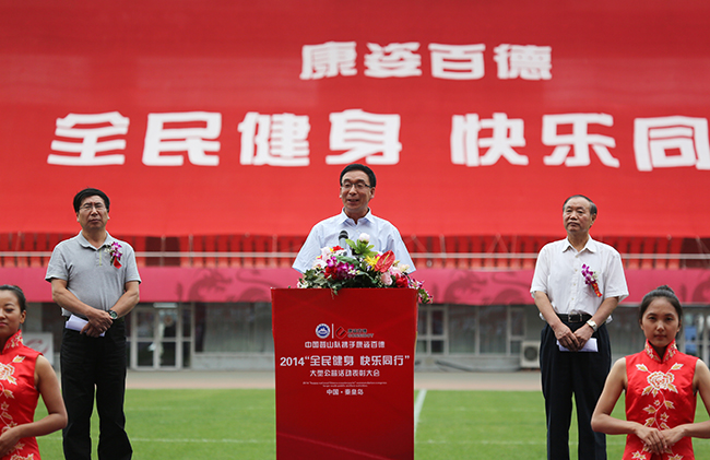 秦皇島康姿百德高新技術(shù)開發(fā)有限公司董事長、總經(jīng)理李銀祥致大會開幕詞;中國登山協(xié)會主席李致新、中國消費者協(xié)會副會長母建華、秦皇島市副市長馮志永等領(lǐng)導(dǎo)出席會議,李致新、母建華作講話,分別對康姿百德公司為“推廣健康科技、造就百歲民族”所做出的努力給予充分肯定;中國奧委會副主席段世杰宣布康姿百德第三套健身操展演開始。