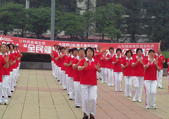 8月8日,山東招遠(yuǎn)的700多名康姿百德健身操愛好者和當(dāng)?shù)厥忻?,在市政府廣場(chǎng)載歌載舞,喜迎“全民健身日”,向人們倡導(dǎo)康姿百德公司提出的“健康睡眠+適量運(yùn)動(dòng)+合理飲食”的立體健康理念,傳遞著健康向上的正能量。 當(dāng)天上午8:30分,由當(dāng)?shù)乜底税俚聭敉饨∩頎I(yíng)組織舉辦的2014“全民健身 快樂(lè)同行”大型公益活動(dòng)招遠(yuǎn)地區(qū)啟動(dòng)儀式在這里隆重舉行,招遠(yuǎn)經(jīng)銷商向廣大市民宣布了本次活動(dòng)的目的和意義,當(dāng)?shù)乜底税俚陆∩頎I(yíng)隊(duì)員進(jìn)行了健身操表演,贏得了在場(chǎng)觀眾的普遍贊賞。大家一致認(rèn)為,康姿百德健身操節(jié)拍有力,動(dòng)作到位,音樂(lè)優(yōu)美,具有適宜人群廣泛、簡(jiǎn)單易學(xué)的特點(diǎn),是市民健身鍛煉的好項(xiàng)目,今后要加入到這個(gè)健身隊(duì)伍中,為推廣全民健身貢獻(xiàn)力量。 本次活動(dòng)得到了當(dāng)?shù)赜嘘P(guān)部門和媒體的重視,招遠(yuǎn)市老體協(xié)等單位領(lǐng)導(dǎo)出席了啟動(dòng)儀式,招遠(yuǎn)新聞對(duì)本次活動(dòng)進(jìn)行了報(bào)道。