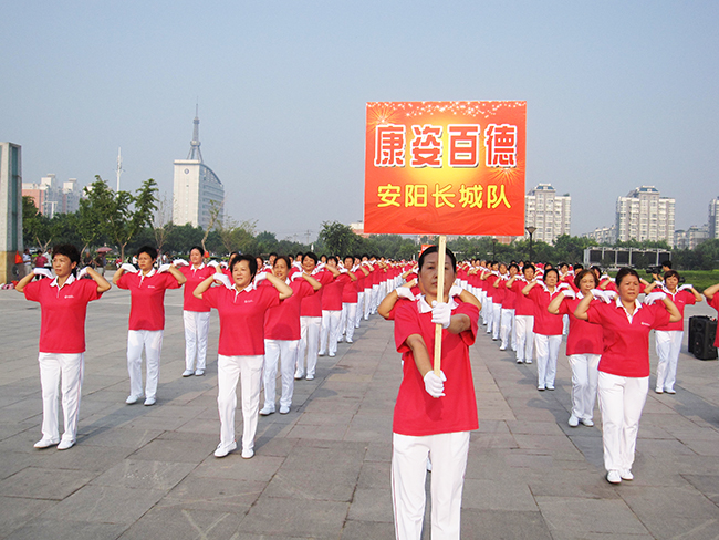 積極備戰(zhàn)9月份在秦皇島市舉行的2013“全民健身·快樂(lè)同行”大型公益活動(dòng)總結(jié)表彰大會(huì),進(jìn)一步提高廣大群眾的全民健身意識(shí)、推廣普及全民健身活動(dòng),康姿百德健身操展演比賽活動(dòng)近日相繼在安陽(yáng)市舉行,深受人們的喜愛(ài)。 8月15日上午,康姿百德第二套健身操大賽在安陽(yáng)市東區(qū)圖書(shū)館、博物館兩個(gè)廣場(chǎng)舉行,來(lái)自各個(gè)健身站點(diǎn)的520名康姿百德健身操隊(duì)員,在烈日的炙烤下,雖然個(gè)個(gè)汗流浹背,但卻精神抖擻、興奮不已。伴隨著一曲曲節(jié)奏明快、耳熟能詳?shù)囊魳?lè),13支代表隊(duì)輪流上場(chǎng)、各展風(fēng)采,隊(duì)員們時(shí)而伸臂擴(kuò)胸,時(shí)而扭腿墊步,動(dòng)作嫻熟整齊,隊(duì)形變幻奇妙,比賽現(xiàn)場(chǎng)猶如一幅幅美麗的畫(huà)卷,讓人應(yīng)接不暇,大飽眼?!?br style="margin:0px;padding:0px;" /> 此前,在8月8日舉行的安陽(yáng)市“全民健身日”啟動(dòng)儀式上,由450人組成的康姿百德健身操隊(duì)伍,以其龐大的陣容和精彩的演出,為人們傳遞了健康、快樂(lè)和幸福,得到了廣大群眾的一致好評(píng)。 據(jù)悉,8月24日,康姿百德產(chǎn)品說(shuō)明會(huì)又將在安陽(yáng)市兩館廣場(chǎng)舉行,屆時(shí)將再次舉行康姿百德健身操展演,并為在康姿百德第二套健身操大賽中獲獎(jiǎng)的代表隊(duì)頒獎(jiǎng)。