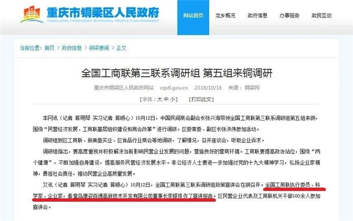 2018年10月10日到16日,全國工商聯(lián)第三聯(lián)系調(diào)研組赴重慶調(diào)研,康姿百德集團董事長李銀祥作為執(zhí)行委員隨同調(diào)研。