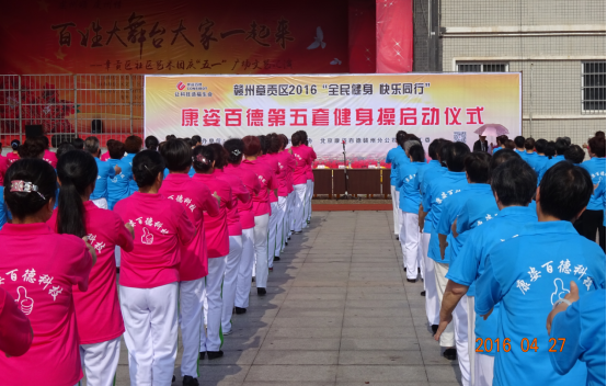 繼康姿百德第五套健身操北戴河、南昌、新疆三站啟動(dòng)儀式后,2016年4月27日,康姿百德第五套健身操江西贛州站啟動(dòng)儀式隆重舉行。