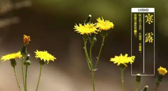 從字面上看,寒露的“寒”就是寒冷,“露”則表示了近地面水汽凝結(jié)成露水的現(xiàn)象。但從氣象角度來(lái)看,寒露節(jié)氣和白露、霜降這兩個(gè)節(jié)氣一樣,所表示的熱量變化意義比它的水分變化意義更為明顯。應(yīng)該說(shuō),寒露更多地體現(xiàn)了一種氣溫轉(zhuǎn)變,季節(jié)轉(zhuǎn)換的過(guò)程。