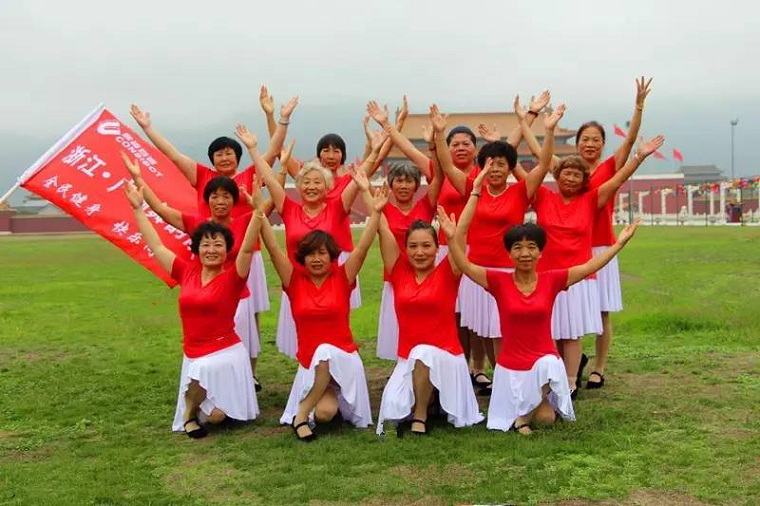 在古建筑恢宏氣勢(shì)的映襯下,大家踏著歡快的節(jié)拍,律動(dòng)優(yōu)美的體姿,用跳健身操的方式表達(dá)著對(duì)美好生活的向往。