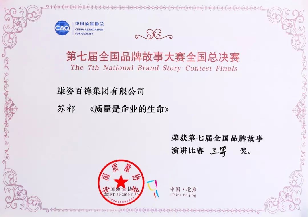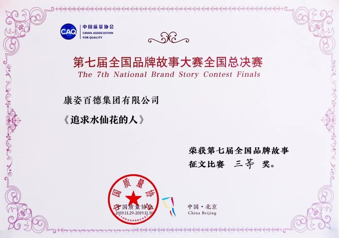 經(jīng)過全國27個(gè)分賽區(qū)、近約450個(gè)作品的激烈角逐和評(píng)選。康姿百德集團(tuán)憑借《追求水仙花的人》的主題征文、《質(zhì)量是企業(yè)的生命》的主題演講、《從科學(xué)家走向企業(yè)家的人生飛躍》的主題演講,從全國眾多的知名品牌故事中脫穎而出,分別斬獲了兩個(gè)三等獎(jiǎng),榮獲一項(xiàng)優(yōu)勝獎(jiǎng)。