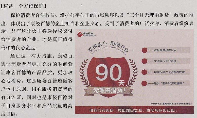 【權益·全方位保護】保護消費者合法權益、維護公平公正的市場秩序以及“三個月無理由退貨”政策的推出,體現(xiàn)出了康姿百德的企業(yè)擔當和企業(yè)良心,受到了消費者的廣泛歡迎,消費者紛紛表示:只有這樣勇于將選擇權交付給消費者的企業(yè),才是真正值得信賴的良心企業(yè)。