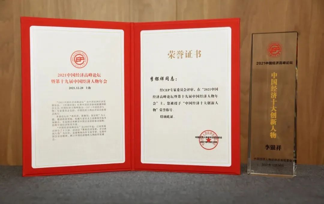 “中國經(jīng)濟(jì)十大創(chuàng)新人物”榮譽(yù)獎杯和證書