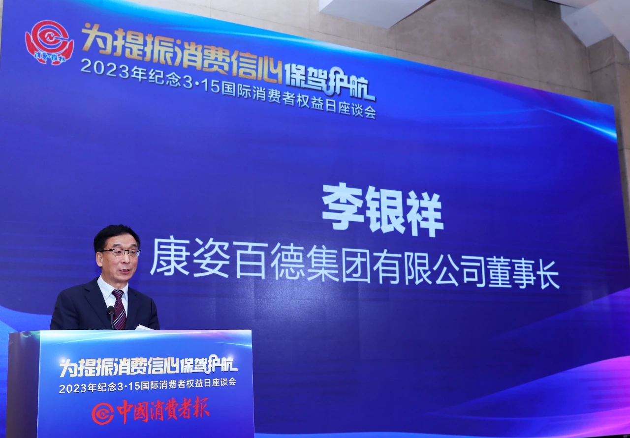 2023年3月14日,經(jīng)國(guó)家市場(chǎng)監(jiān)督管理總局、中國(guó)消費(fèi)者協(xié)會(huì)指導(dǎo),中國(guó)消費(fèi)者報(bào)社、中國(guó)消費(fèi)網(wǎng)主辦的2023年度“紀(jì)念3·15”國(guó)際消費(fèi)者權(quán)益日座談會(huì)在京召開。來(lái)自國(guó)家市場(chǎng)監(jiān)管總局相關(guān)司局負(fù)責(zé)人、中國(guó)消費(fèi)者協(xié)會(huì)領(lǐng)導(dǎo),以及在保護(hù)消費(fèi)者權(quán)益方面貢獻(xiàn)突出的典范企業(yè)等,共同參加本次座談會(huì)。康姿百德集團(tuán)董事長(zhǎng)李銀祥受邀出席,并作主旨演講。