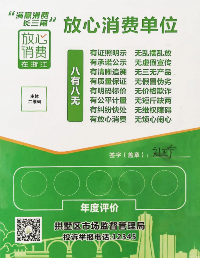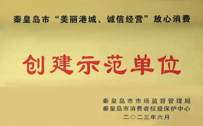 榮獲“放心消費(fèi)單位”榮譽(yù)稱(chēng)號(hào)