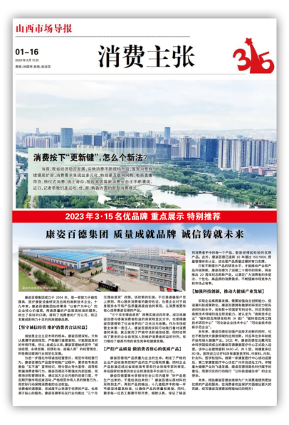 “3·15”國(guó)際消費(fèi)者權(quán)益日,康姿百德以誠(chéng)信經(jīng)營(yíng)、積極維護(hù)消費(fèi)者合法權(quán)益的良好社會(huì)形象榮登《中國(guó)消費(fèi)者報(bào)》,這也是康姿百德連續(xù)登報(bào)的第7年。這充分說(shuō)明,康姿百德在誠(chéng)信自律、維護(hù)消費(fèi)者合法權(quán)益等方面的努力和付出,得到了社會(huì)各界的高度肯定和廣泛認(rèn)可。