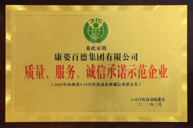 康姿百德榮獲“誠(chéng)信典范企業(yè)”榮譽(yù)稱(chēng)號(hào)