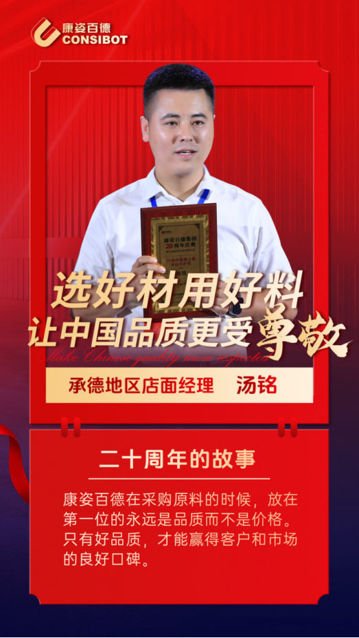 今年是康姿百德集團成立20周年。在20年的發(fā)展歷程中,涌現(xiàn)出一大批在生產(chǎn)發(fā)展、原料采購、質(zhì)量管控、經(jīng)營管理、售后服務等各個領(lǐng)域立足崗位、奉獻建功的優(yōu)秀代表。讓我們一起看看這些榜樣故事。本期帶你走進康姿百德承德地區(qū)店面經(jīng)理湯銘。