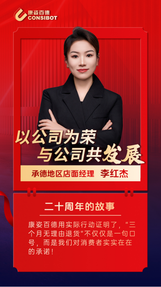 今年是康姿百德集團成立20周年。在20年的發(fā)展歷程中,涌現(xiàn)出一大批在生產(chǎn)發(fā)展、原料采購、質(zhì)量管控、經(jīng)營管理、售后服務(wù)等各個領(lǐng)域立足崗位、奉獻建功的優(yōu)秀代表。讓我們一起看看這些榜樣故事。本期帶你走進康姿百德承德地區(qū)店面經(jīng)理李紅杰。