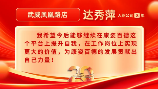 康姿百德20周年專(zhuān)賣(mài)店員工的系列故事會(huì)持續(xù)推出,讓我們一起期待其他地區(qū)專(zhuān)賣(mài)店員工代表的精彩故事吧!