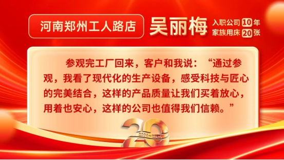 今年是康姿百德集團(tuán)成立20周年。在20年的發(fā)展歷程中,有這樣一群人,他們?cè)谑袌?chǎng)經(jīng)營(yíng)管理過程中,深刻貫徹以客戶為中心的理念,始終把優(yōu)質(zhì)的服務(wù)融于門店經(jīng)營(yíng)的每個(gè)環(huán)節(jié),也因此得到了客戶的贊賞和認(rèn)可。他們就是康姿百德專賣店的員工。本期和您分享的是康姿百德河南地區(qū)和福建地區(qū)專賣店員工代表的故事。