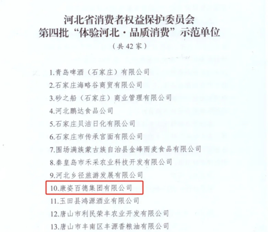秦皇島市場監(jiān)管部門于12月10日在公眾平臺公布了本市第四批“體驗河北·品質消費”示范單位入選名單,康姿百德集團榜上有名。