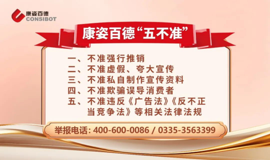 康姿百德成立20年來,始終堅持“誠信經營、永續(xù)發(fā)展、回饋社會、造福人類”的經營理念,把消費者的利益放在首要位置,堅守產品質量關,建立完善的宣傳管理制度,做到如實宣傳,明令禁止強行推銷、夸大宣傳、過度承諾等行為,建立健全服務質量保障體系,以實際行動為消費者營造安心、放心的消費環(huán)境??底税俚峦ㄟ^全方位的保障機制,不斷增強消費者的安全感和滿意度。