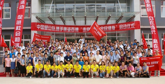 2011年8月3日,中國登山隊攜手康姿百德“走向戶外全民健身”啟動儀式在秦皇島康姿百德第一科技園隆重舉行??底税俚鹿救珖?jīng)銷商代表及全體員工參加了啟動儀式。
