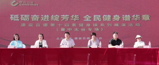 康姿百德集團(tuán)銷售公司副總監(jiān) 惠鵬,太原區(qū)域經(jīng)理 肖峰,晉中地區(qū)、太原地區(qū)總經(jīng)理 趙淑敏,晉中太谷地區(qū)總經(jīng)理 王海麗,晉中太谷地區(qū)健身操愛好者代表 楊惠榮,太谷地區(qū)消費(fèi)者代表 王富平共同出席了本次活動(dòng)。